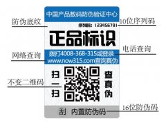 上海尚源防偽采用數(shù)碼防偽原理,即電碼防偽。為每一件入網(wǎng)的產(chǎn)品設(shè)置一個獨一的編...